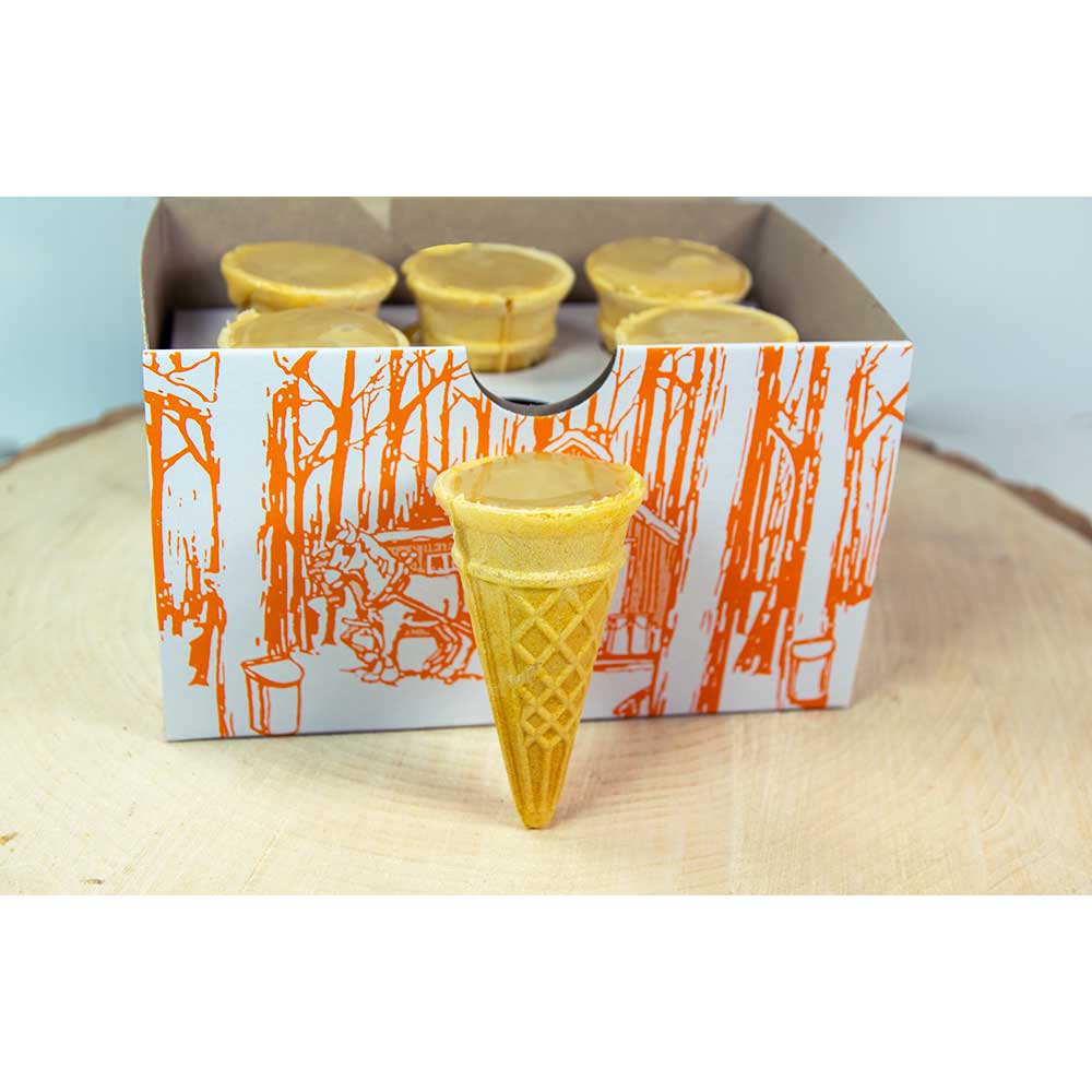 Faits à partir de notre sirop d'érable 100% pur, chaque cornet est un délice qui fond dans la bouche et qui se donne parfaitement en cadeau.