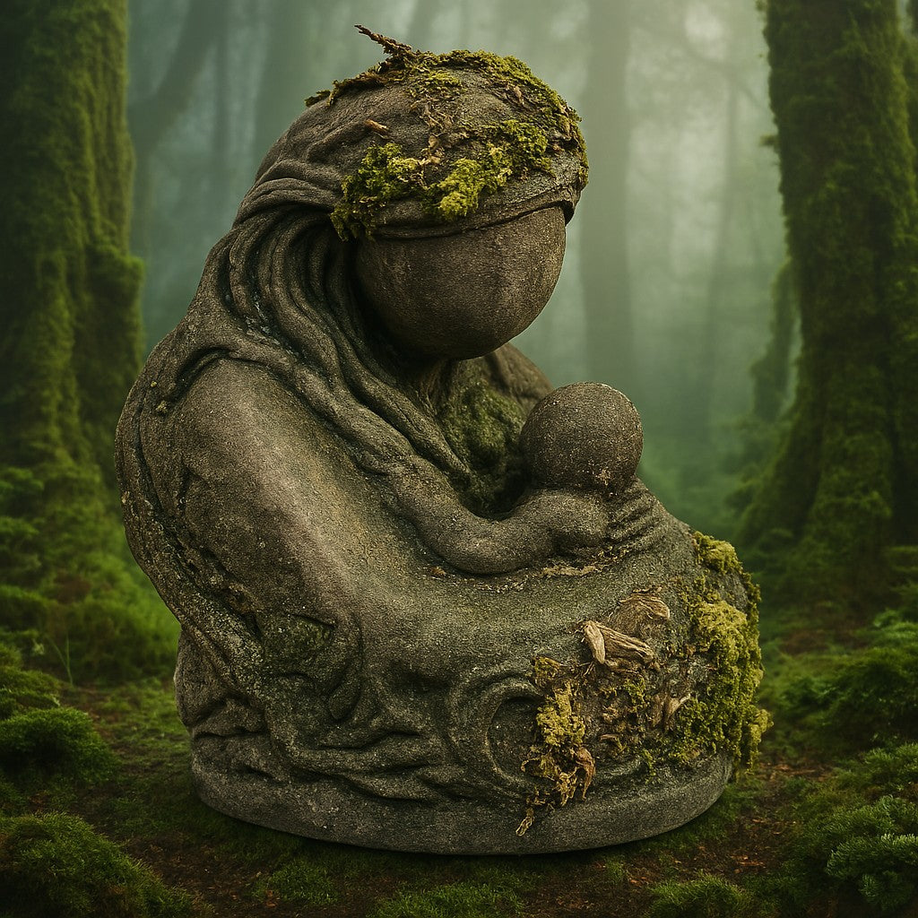 Elle rend hommage à l’énergie maternelle, à la force tranquille et à la présence réconfortante d’une étreinte nourricière.